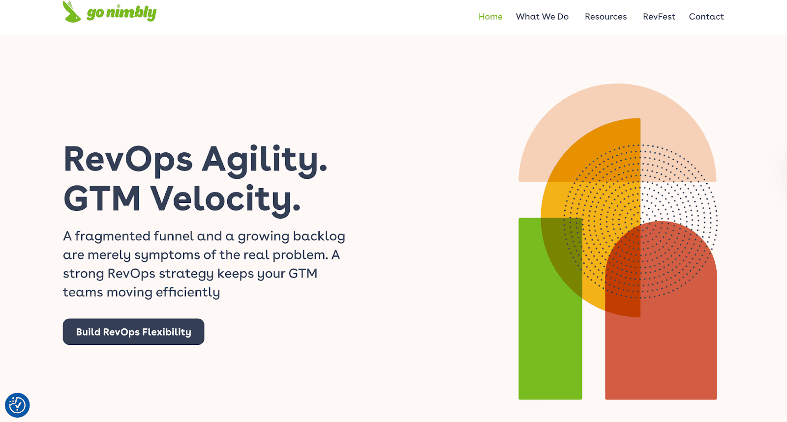 Go Nimbly markets themselves as the "Revenue Operations Company." They target the gap between strategy and execution for larger organizations. They are particularly strong in aligning the "customer gap" - the friction points that occur when a customer moves from marketing to sales to CS.