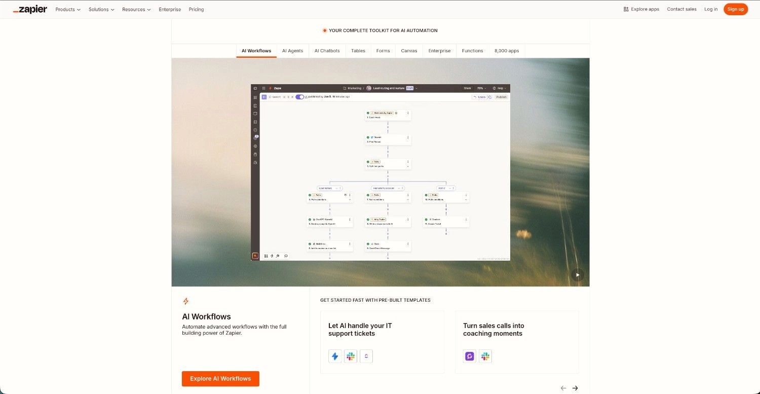 Zapier dominates the no-code automation market with 7,000+ integrations and millions of users. The platform is designed for non-technical users – you select a trigger app, choose an action app, and map fields. Zapier handles the complexity behind the scenes.